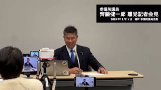 齊藤健一郎参議院議員がNHKから国民を守る党を離党することを表明しました。